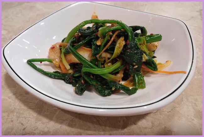 시금치는 비타민과 미네랄이 풍부한 채소입니다. 조리법은 매우 간단합니다. 신선한 시금치를 깨끗이 씻은 후, 끓는 물에 살짝 데쳐주세요. 그 다음, 참기름, 마늘, 간장을 넣고 잘 무쳐주면 아주 맛있는 밑반찬 레시피가 완성됩니다. 이 반찬은 특히 철분이 풍부하여, 빈혈 예방에 좋습니다.